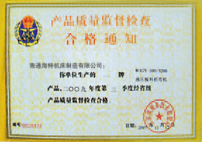產(chǎn)品質(zhì)量監(jiān)督檢查合格通知
